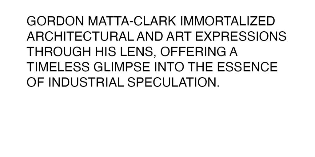 Gordon Matta-Clark, has been a central figure in the 1970s art scene, redefined urban space with his concept of "anarchitecture." Through daring architectural interventions, he transformed neglected structures into art pieces. Matta-Clark's anarchitecture blurred the lines between art and architecture, challenging societal norms and perceptions. His innovative approach, often involving cutting or removing sections of buildings, created new perspectives on urban landscapes. Photography is a mean through which the essence of Matta-Clark's ephemeral installations is captured. His photographs not only preserved his work but also became integral to understanding the temporal nature of anarchitecture, immortalizing its rebellious spirit.